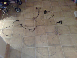 was a cardboard box in the corner next to the rolling road, with loads of various