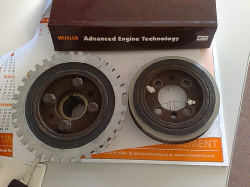 Here we have a pair of Peugeot Mi16 Crankshaft dampers, both machined to take a 5.25” ring gear trigger wheel. The crank sensor will be mounted on the sump on an aluminium bracket. I will install one of the dampers on the crankshaft, and position the sensor in line with the trigger wheel. Before timing it up correctly.